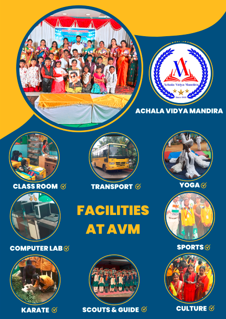 Achala Vidya Mandira offers a comprehensive range of facilities to support the holistic development of its students. The school is equipped with a sick bay for medical emergencies, an art center to foster creativity, and provisions for indoor games to promote physical well-being. Technological integration is evident through a computer lab, e-learning classes, and smart classrooms, enhancing the learning experience. Dedicated math and science labs provide practical exposure to complement theoretical knowledge. Counseling services are available to support students' mental and emotional health. The institution also boasts spacious classrooms, a playground for outdoor sports, and an audio-visual conference room, ensuring a well-rounded educational environment